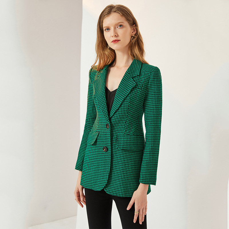 Sleek Commuter Houndstooth Single-Breasted Blazer