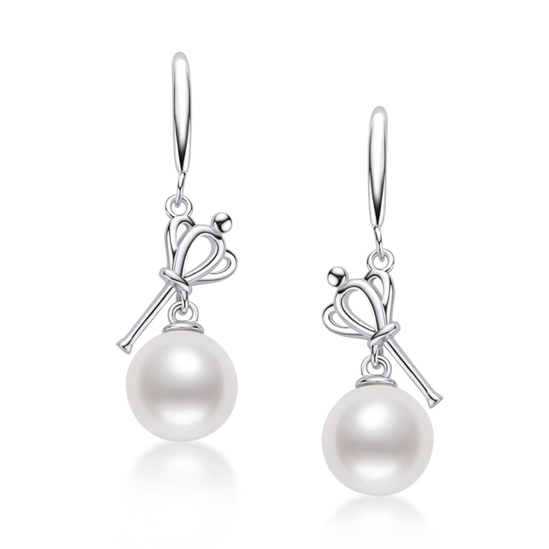 7.5-8mm Sterling Silver Bow Freshwater Pearl Earrings