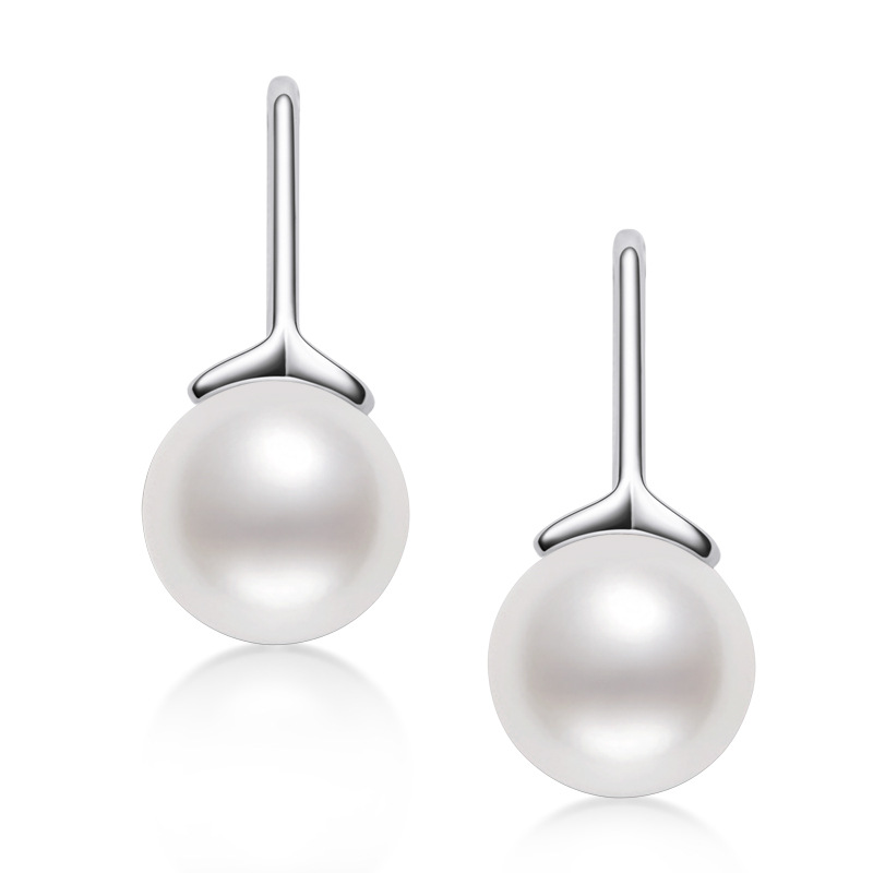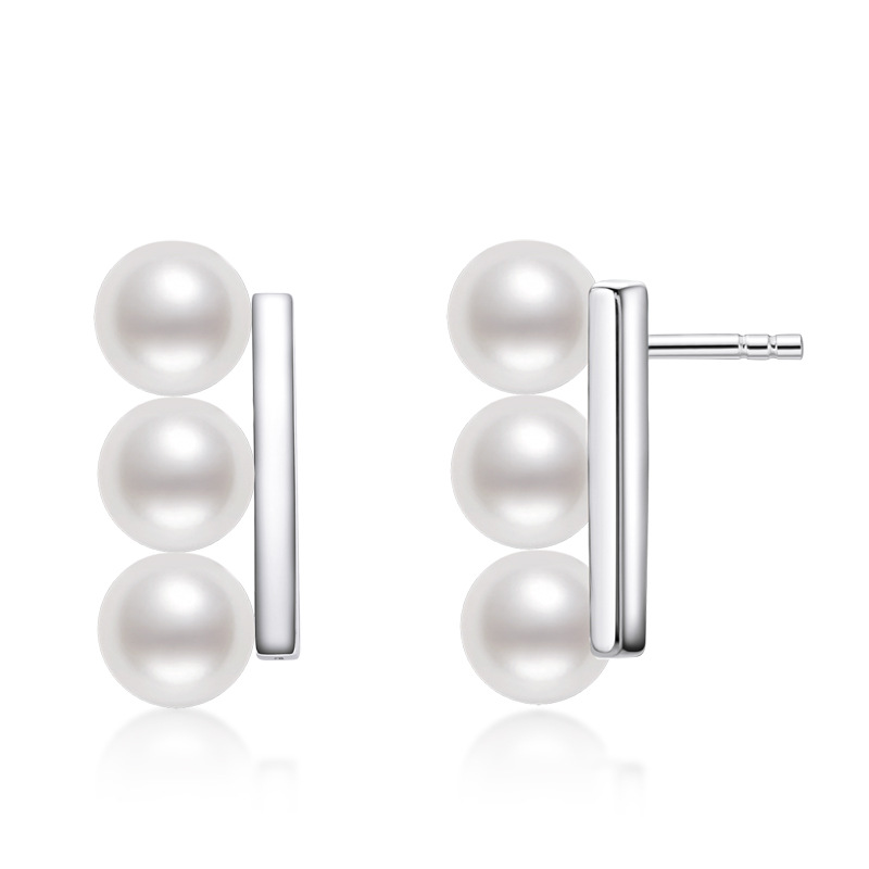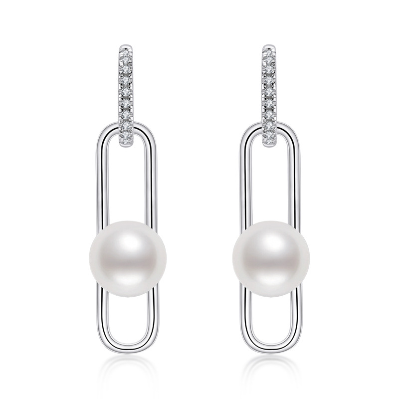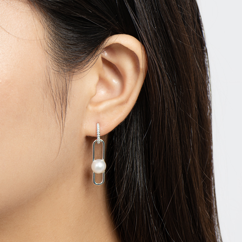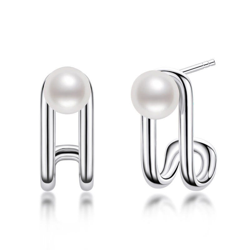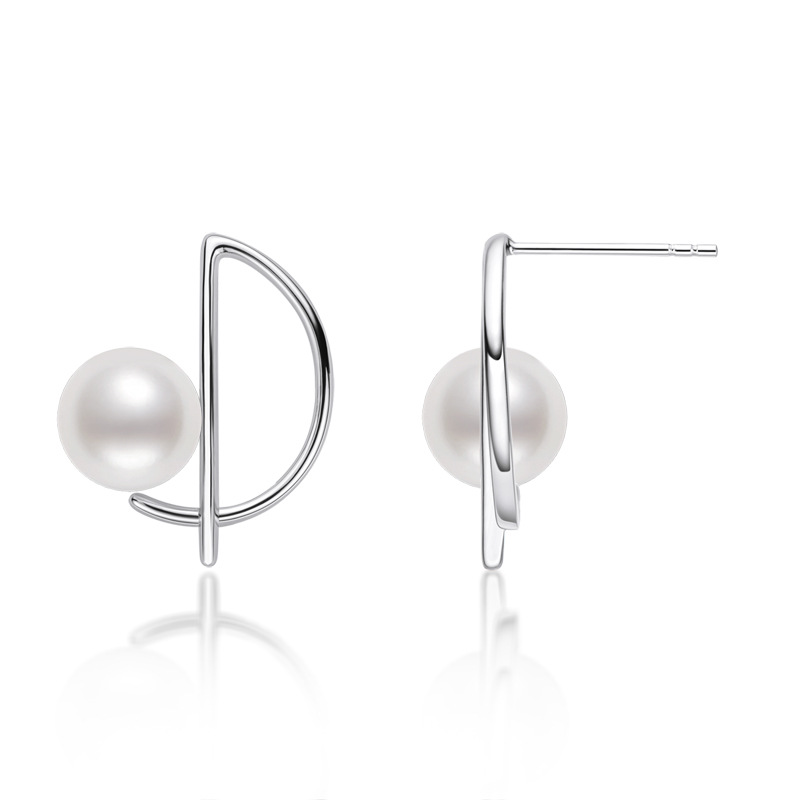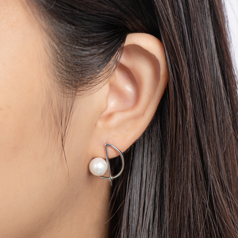 6mm Sterling Silver Geometry Fashion Freshwater Pearl Earrings