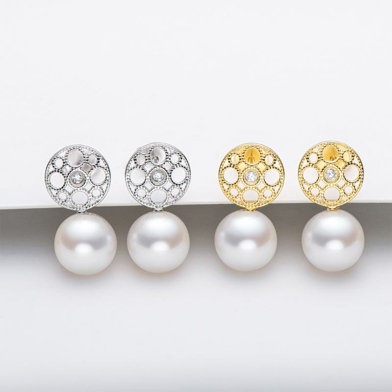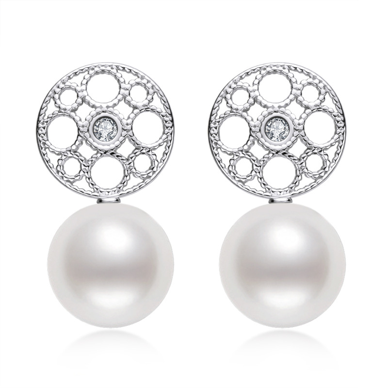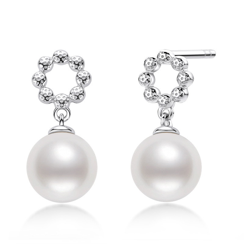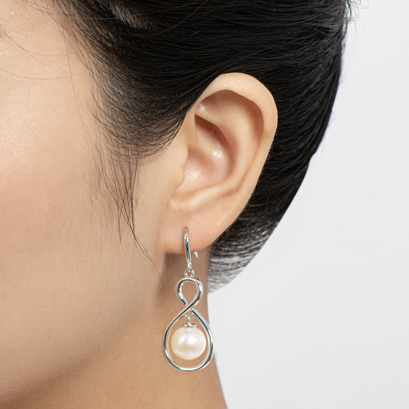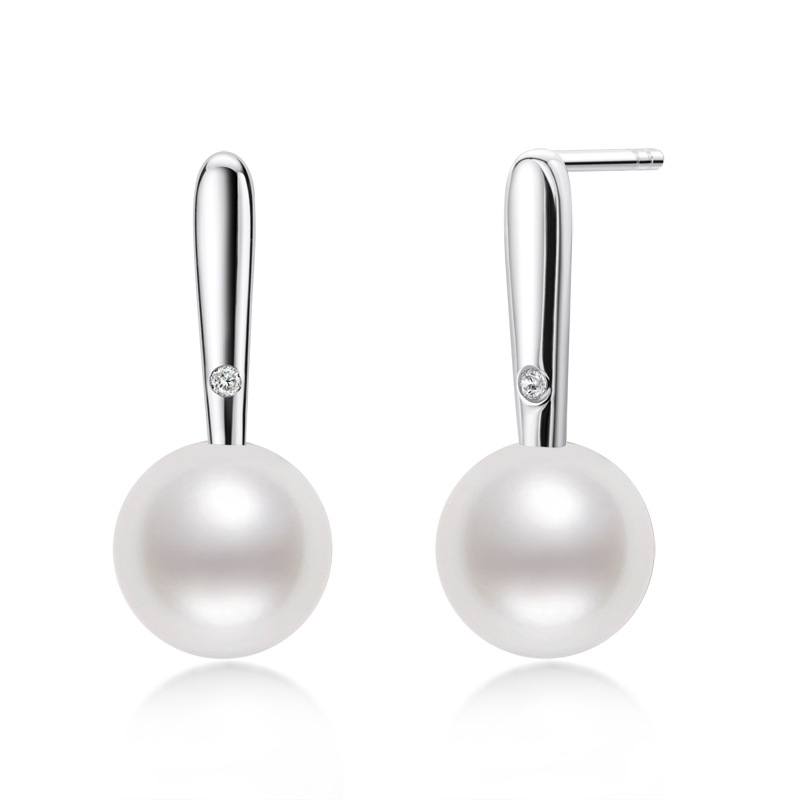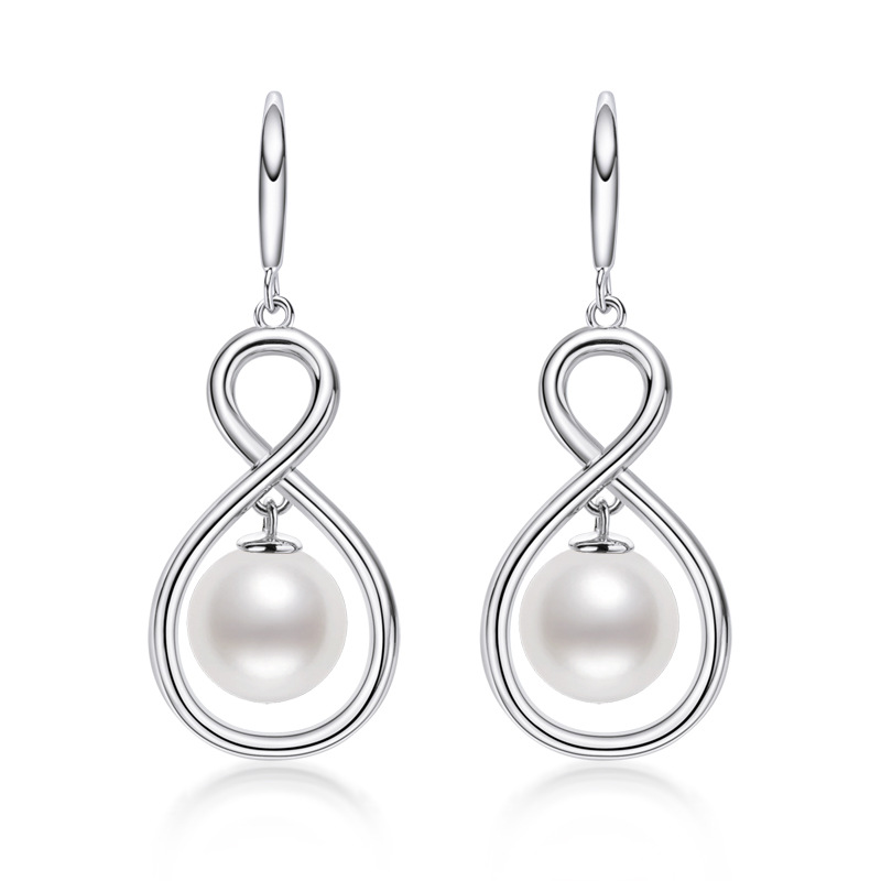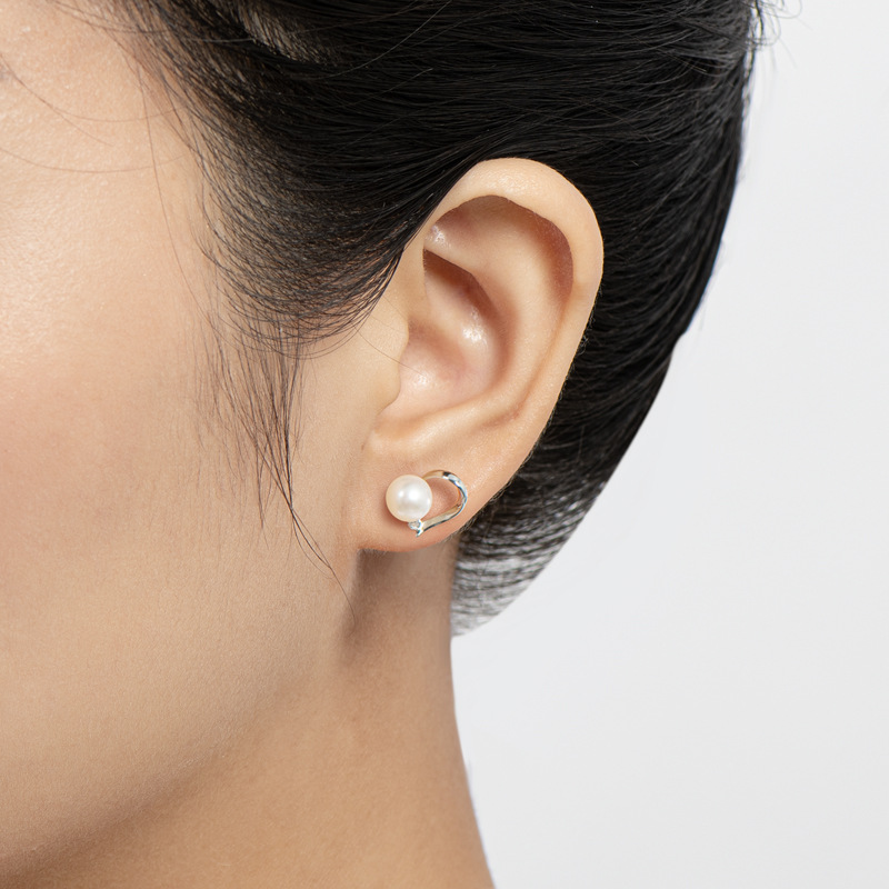 6mm Sterling Silver Geometry Fashion Freshwater Pearl Earrings