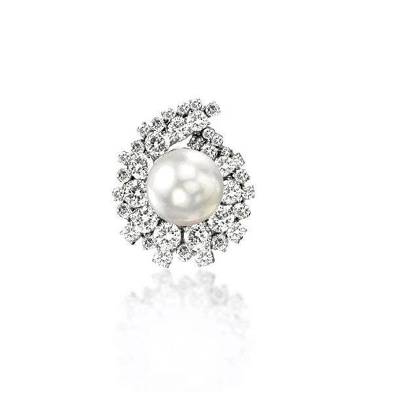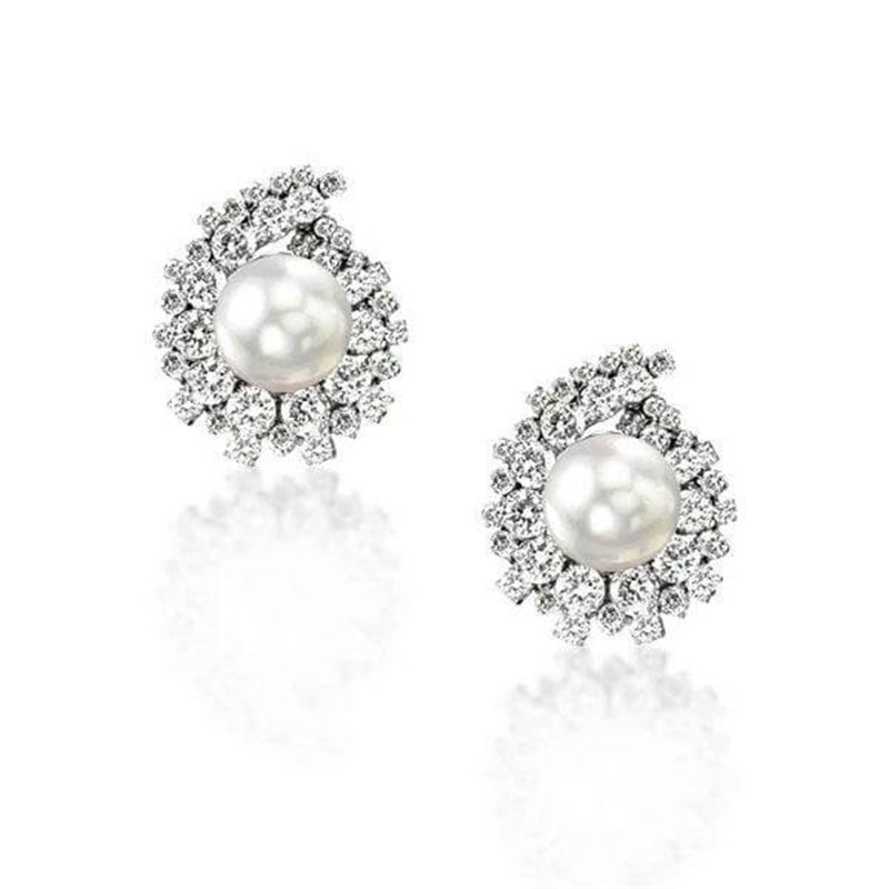 6-6.5mm SSterling Silver Pearl Earrings With Diamonds