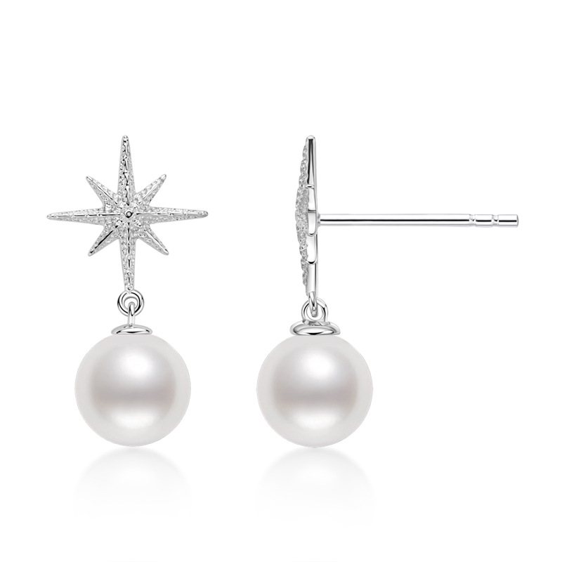 6.5-7mm Sterling Silver Natural Freshwater Pearl Starfish Earrings