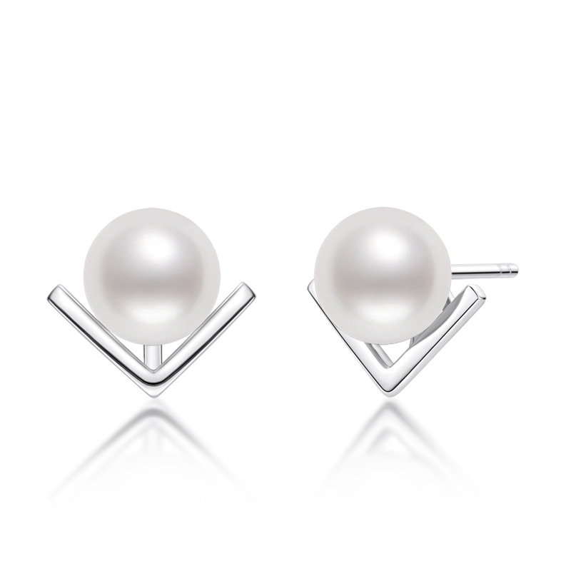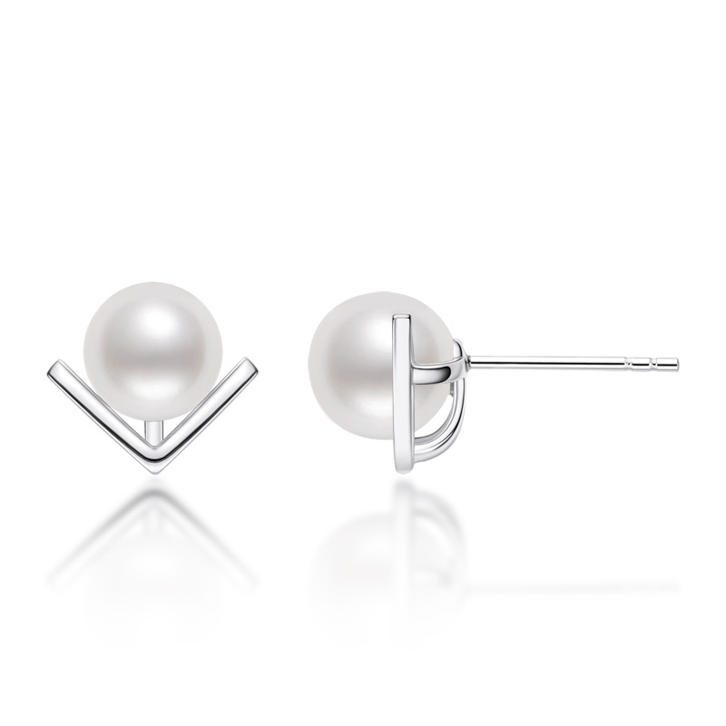 7-7.5mm Sterling Silver V-shaped Freshwater White Pearl Earrings