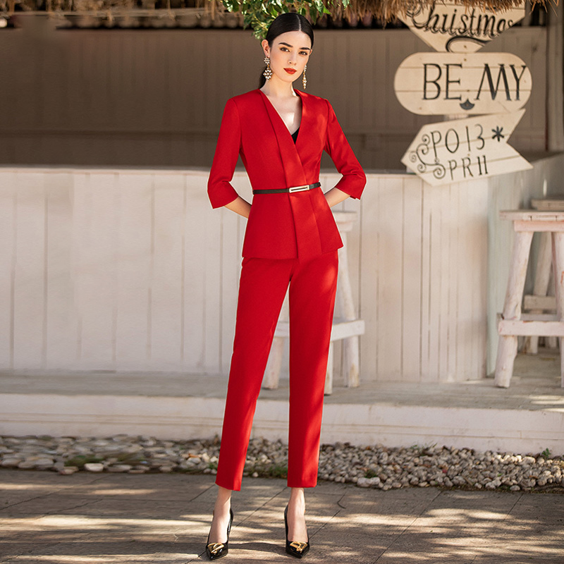 X-shaped Women's Diagonal Button Professional Suit Pants Three-piece Set