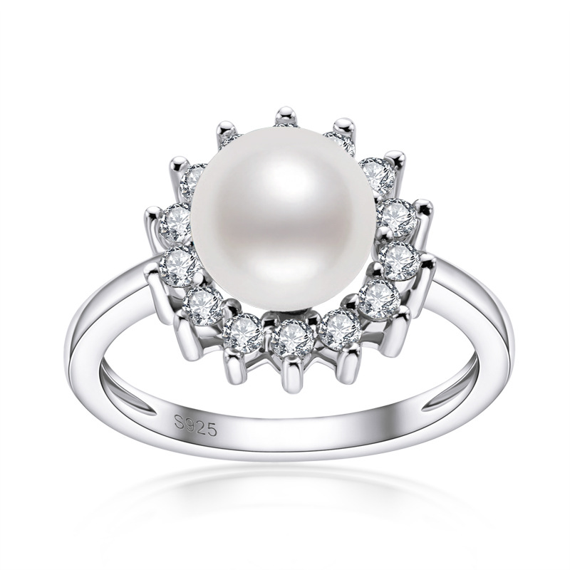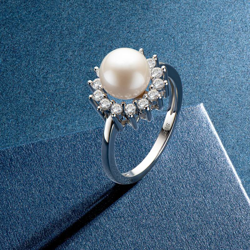 Women Geometric Fashion Silver Freshwater Pearl Ring