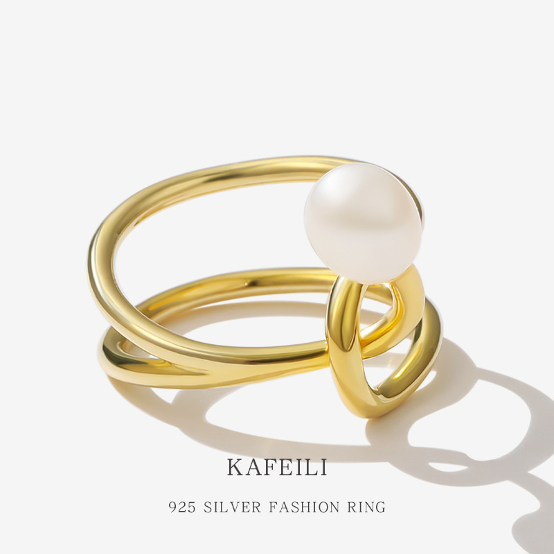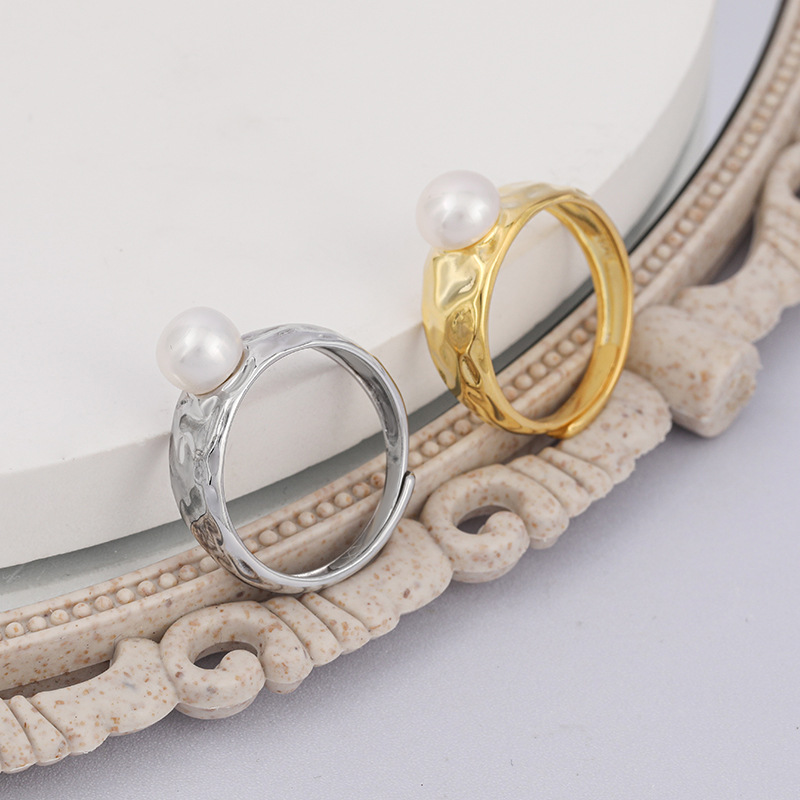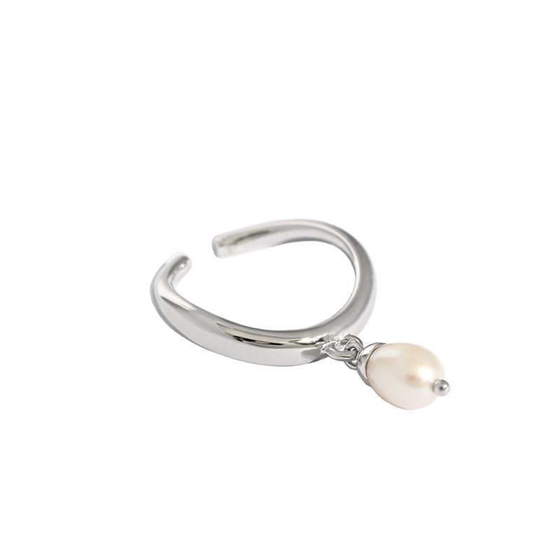 Cold Wind Style Irregular Convex Surface Silver Freshwater Pearl Joint Ring