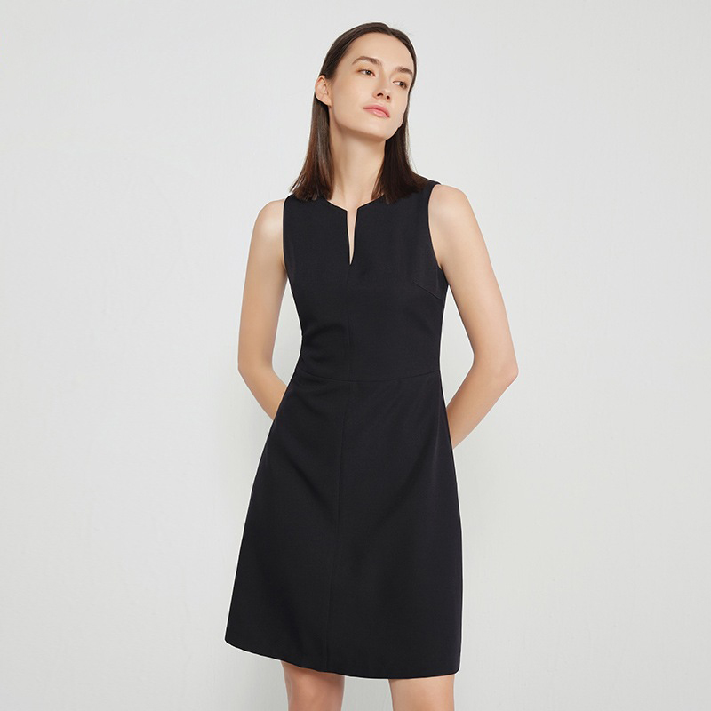 Commuter Sleeveless Solid Color Slim Fit Dress