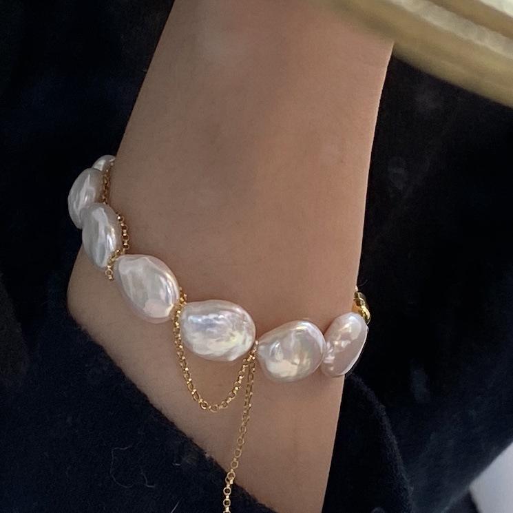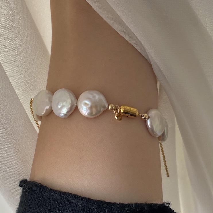 Colorful Texture Natural Baroque Pearl Magnetic Clasp Bracelet