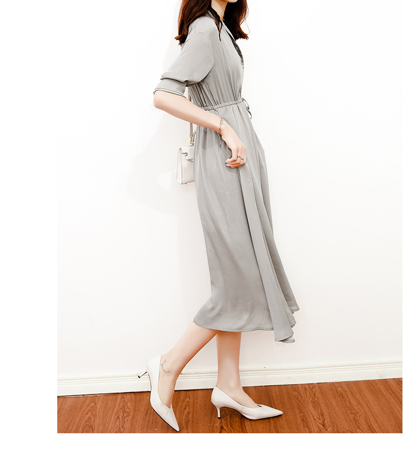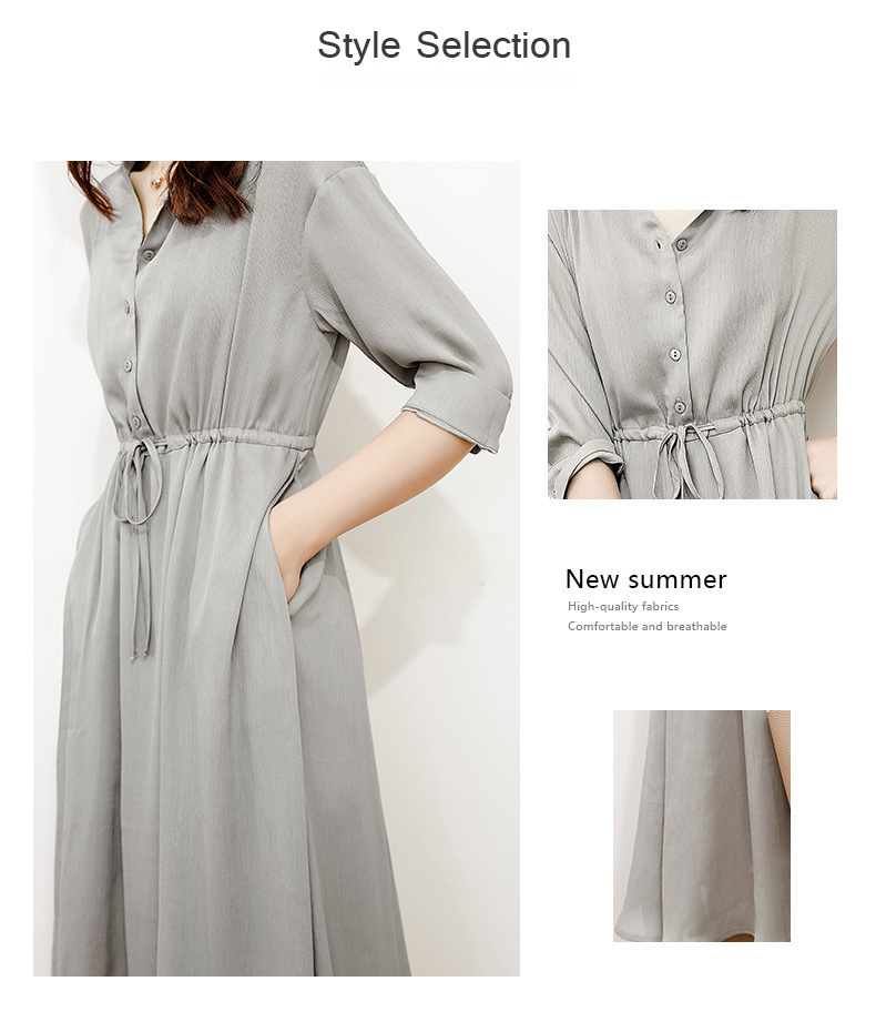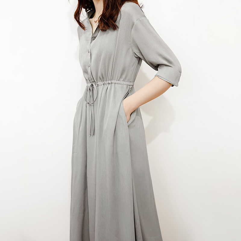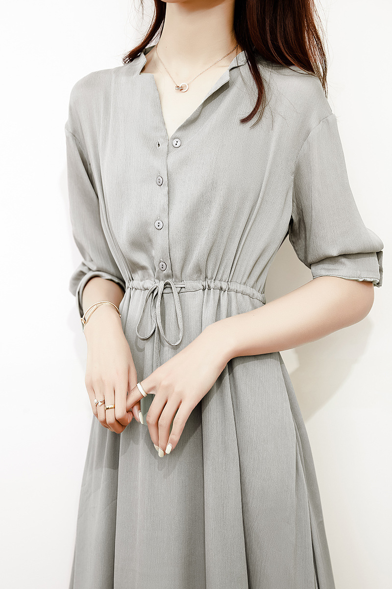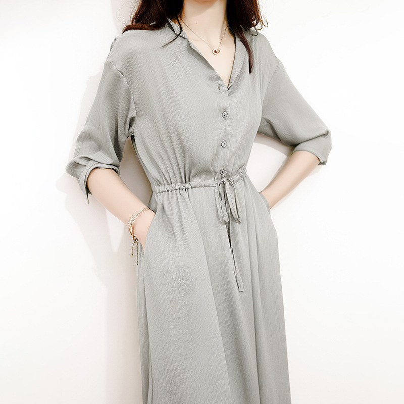 Elegant V-Neck Drawstring Waist Shirt Dress