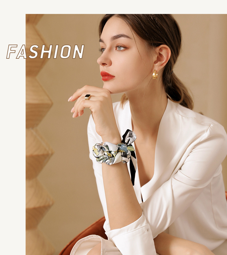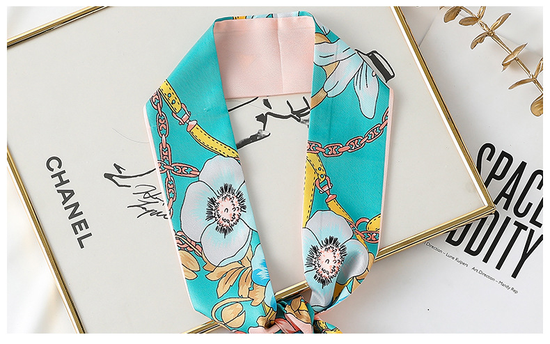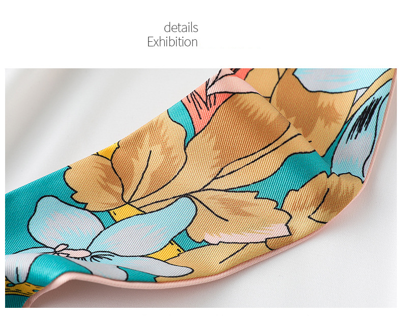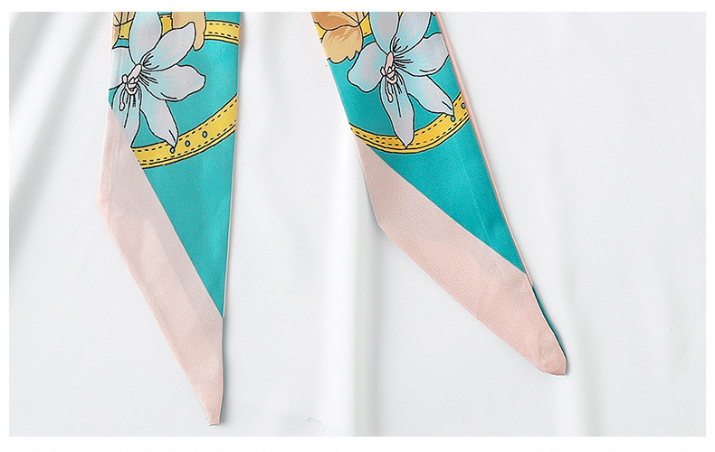 Floral Print Ribbon Headband Long Silk Scarf