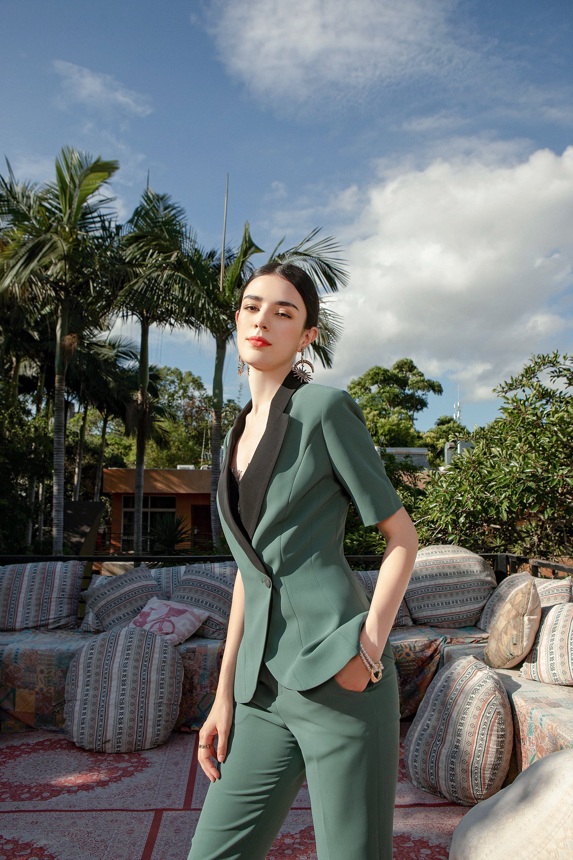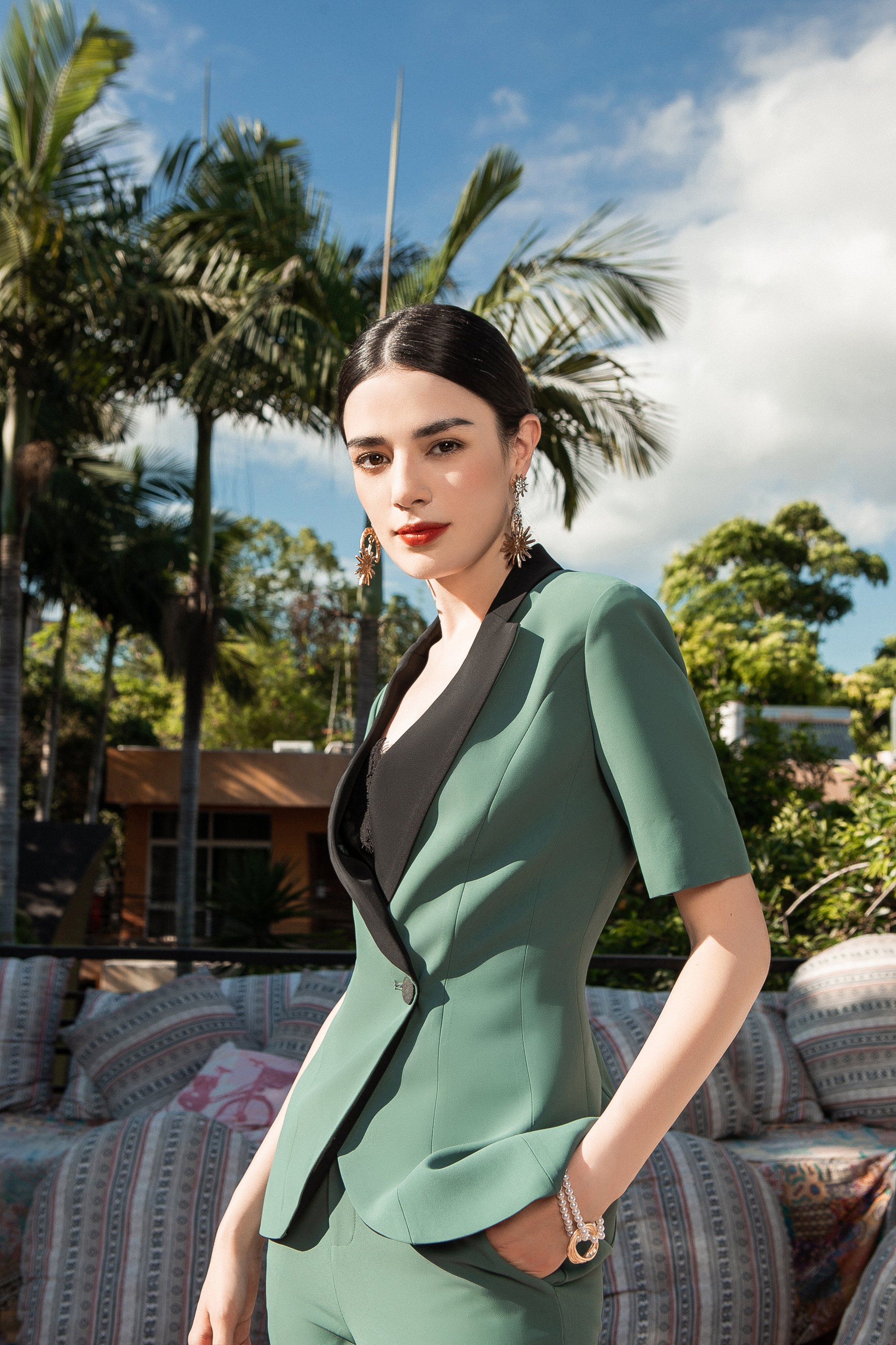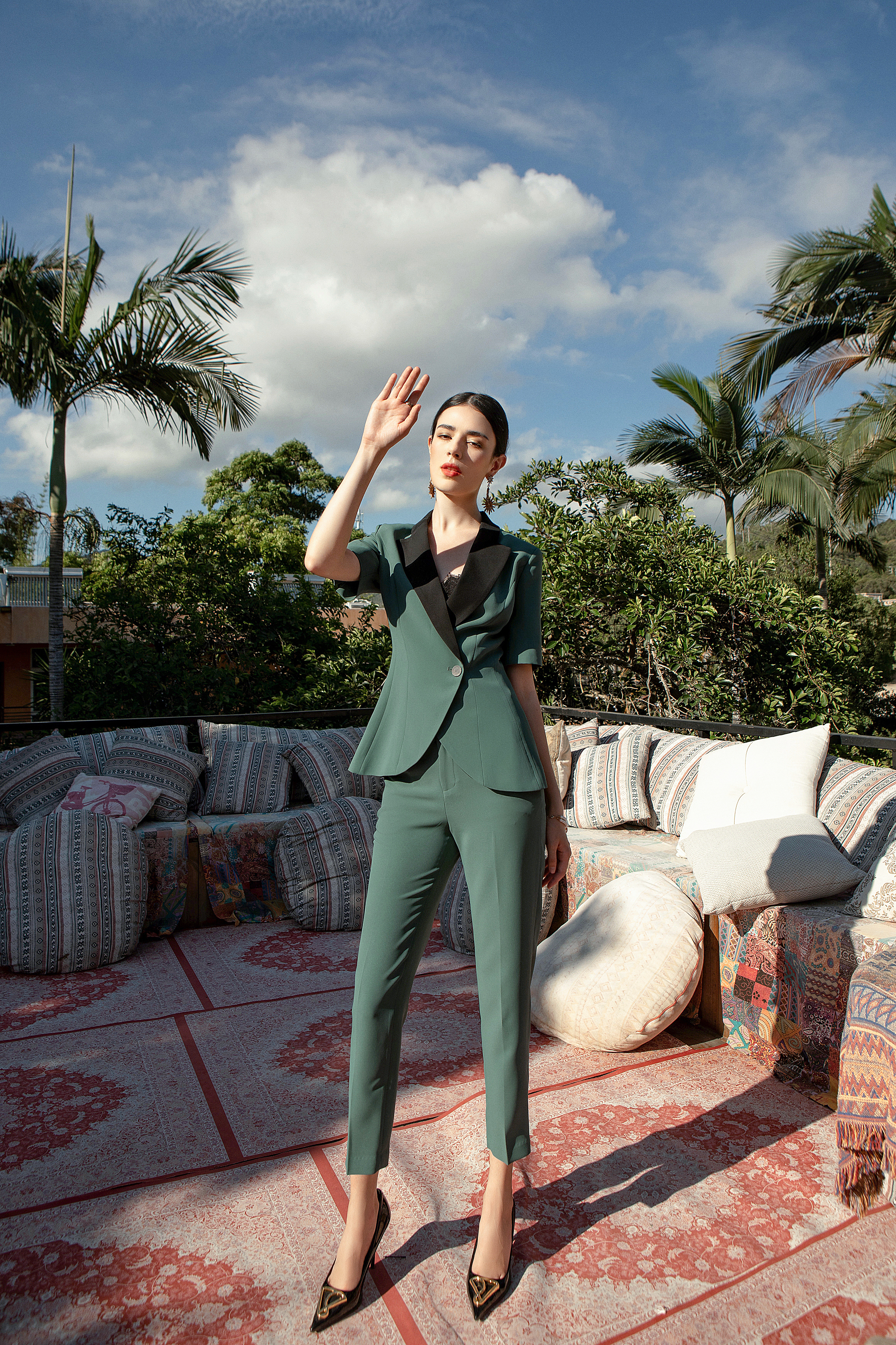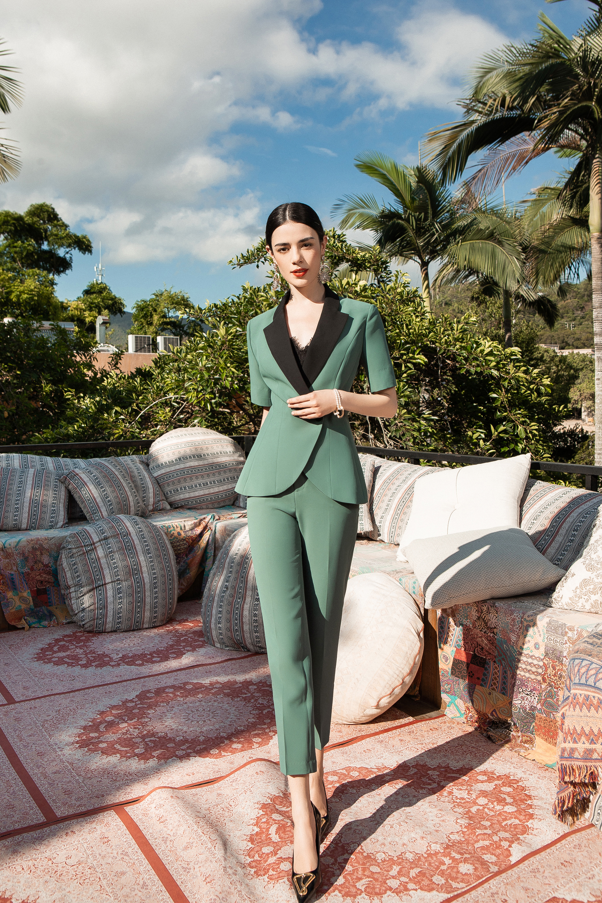 Green Contrast Suit Three Piece