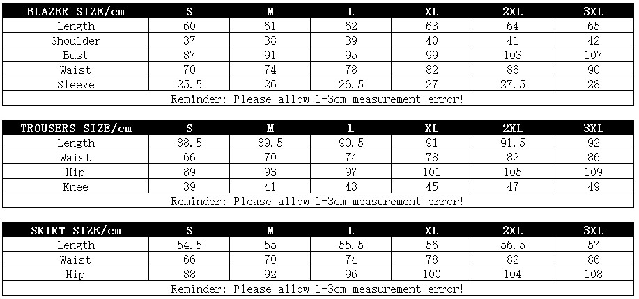Blazer + Trousers + Skirt