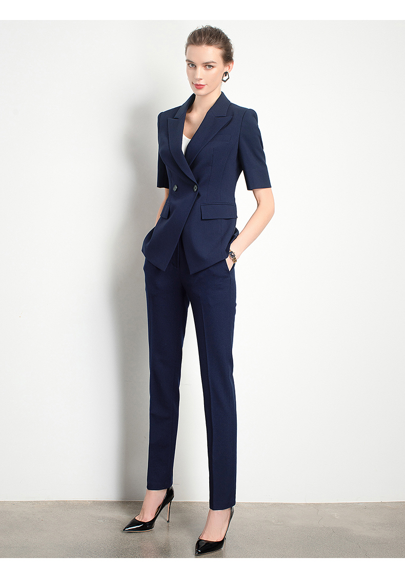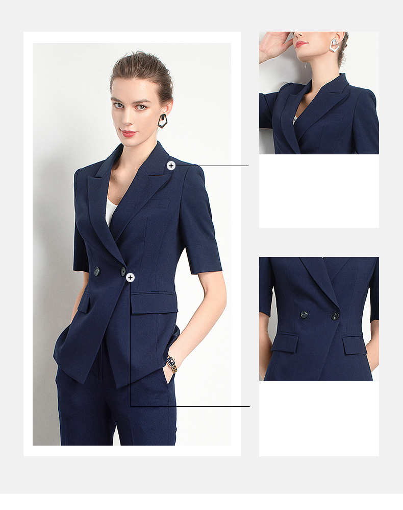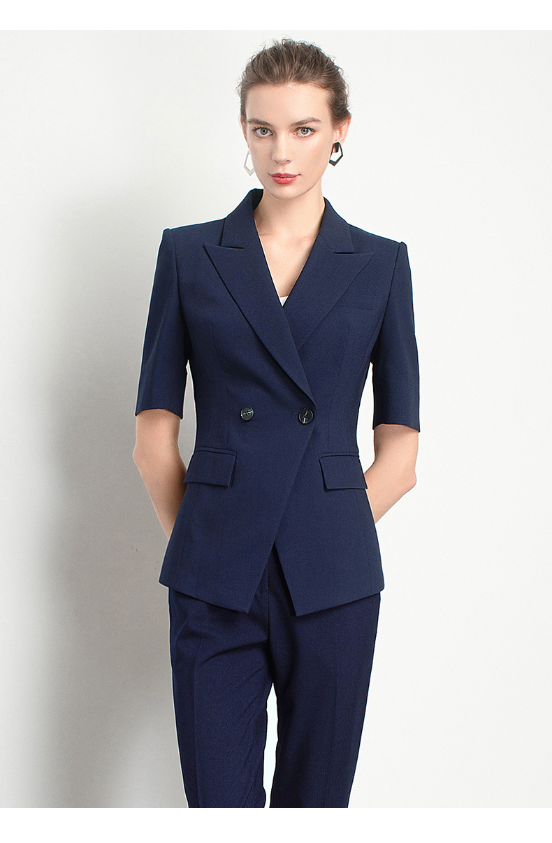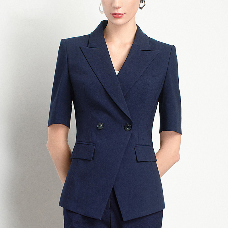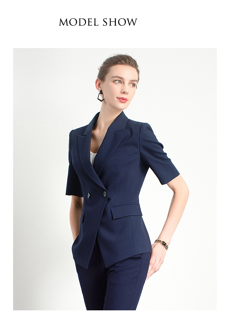 Style: Ol CommuterMaterial: PolyesterBlazer Length: EgularCollar-line: V-CollarSleeve Type: Conventional SleeveSleeves Length: Short SleevesPattern Type: Solid ColorSeason: Spring,Summer,Autumn