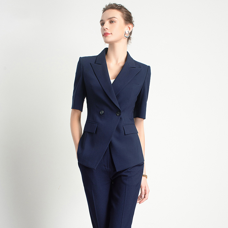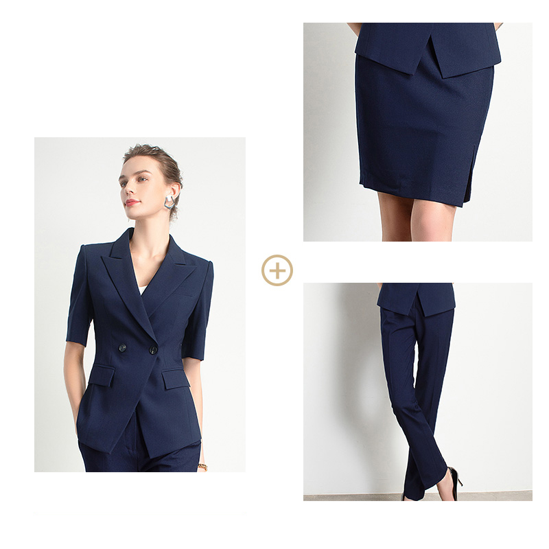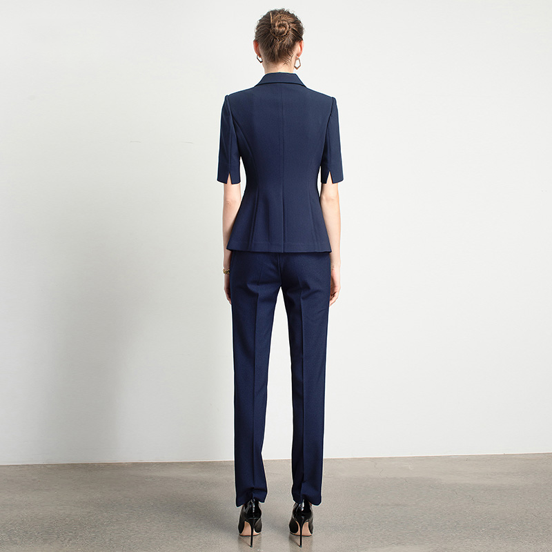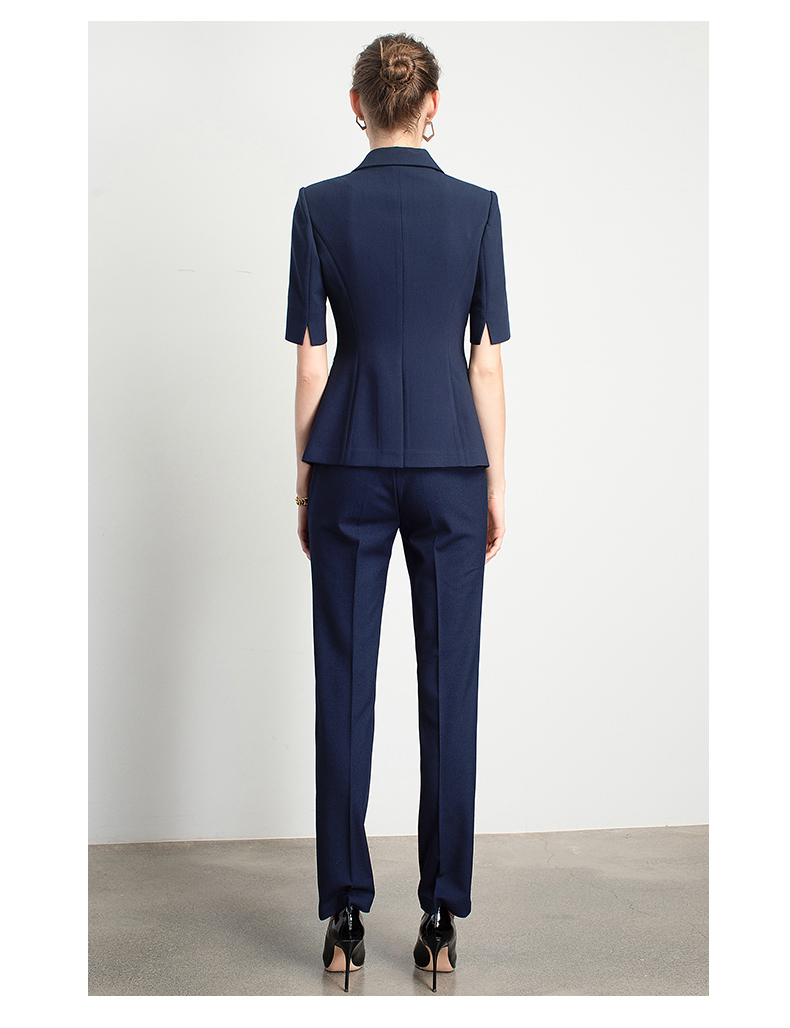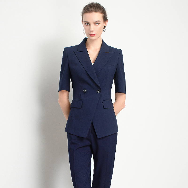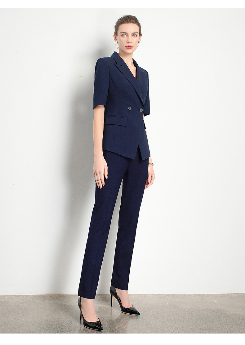 Style: Ol CommuterMaterial: PolyesterBlazer Length: EgularCollar-line: V-CollarSleeve Type: Conventional SleeveSleeves Length: Short SleevesPattern Type: Solid ColorSeason: Spring,Summer,Autumn