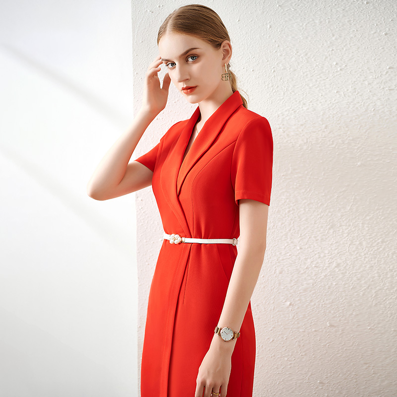Style: Ol CommuterOccasions: DailySize: S, M, L, XL, 2XLColor: RedSkirt Length: Knee-lengthCollar: V-CollarSleeves Length:Short SleevesMaterial: PolyesterPattern Type: Solid ColorSeasons: Spring,Summer,AutumnPackage:Dress*1