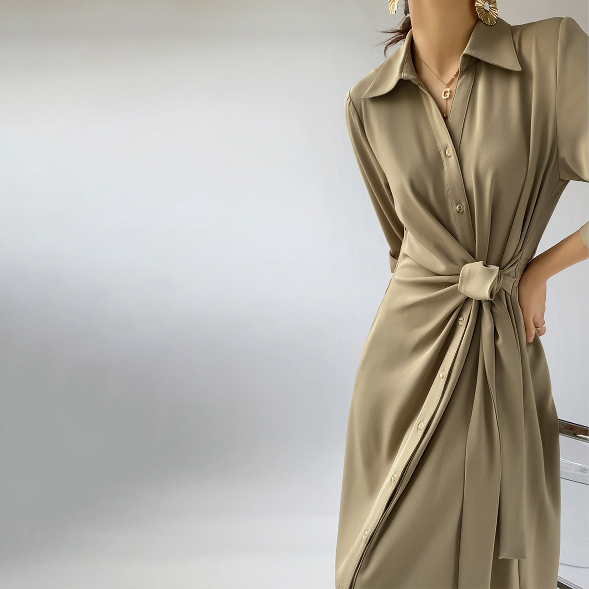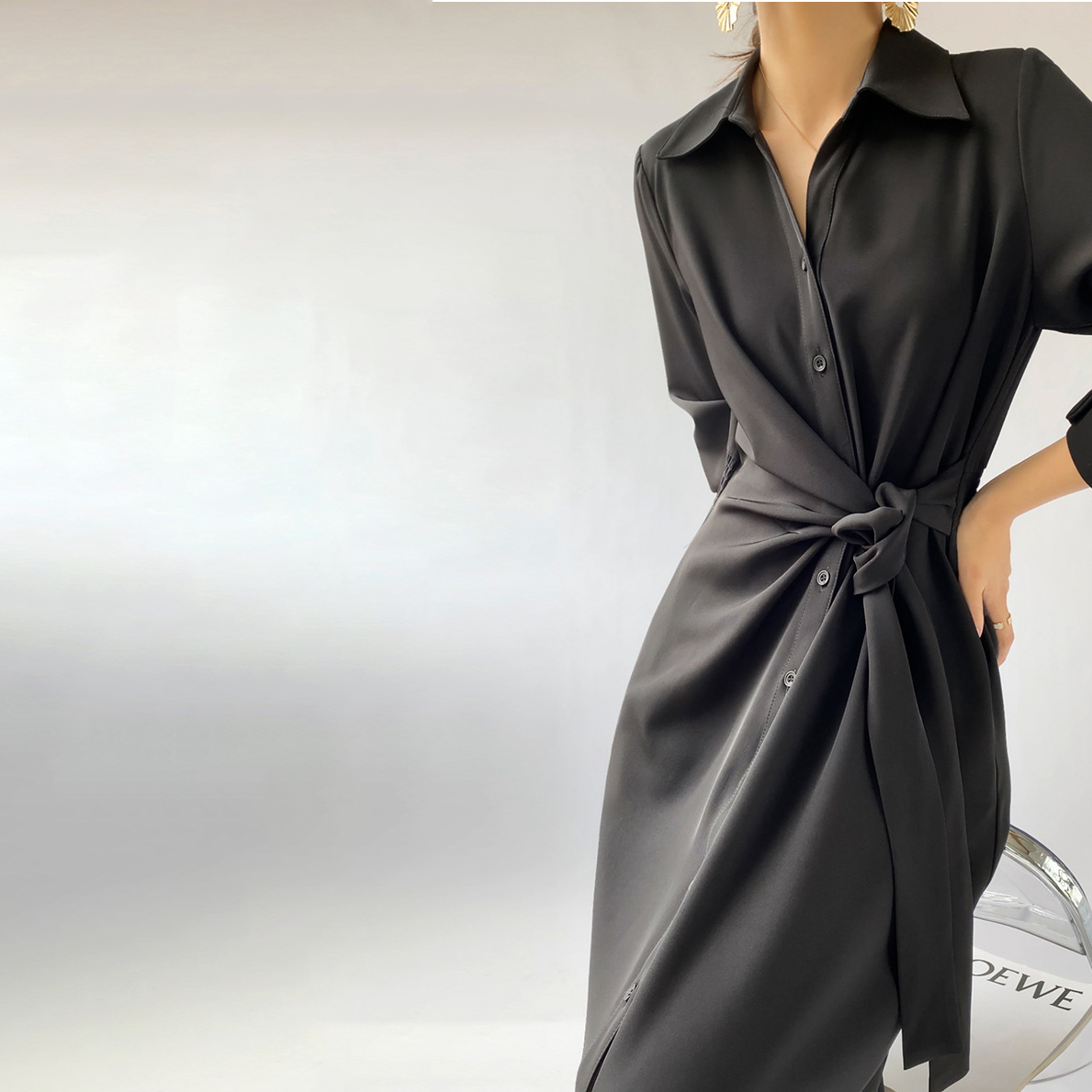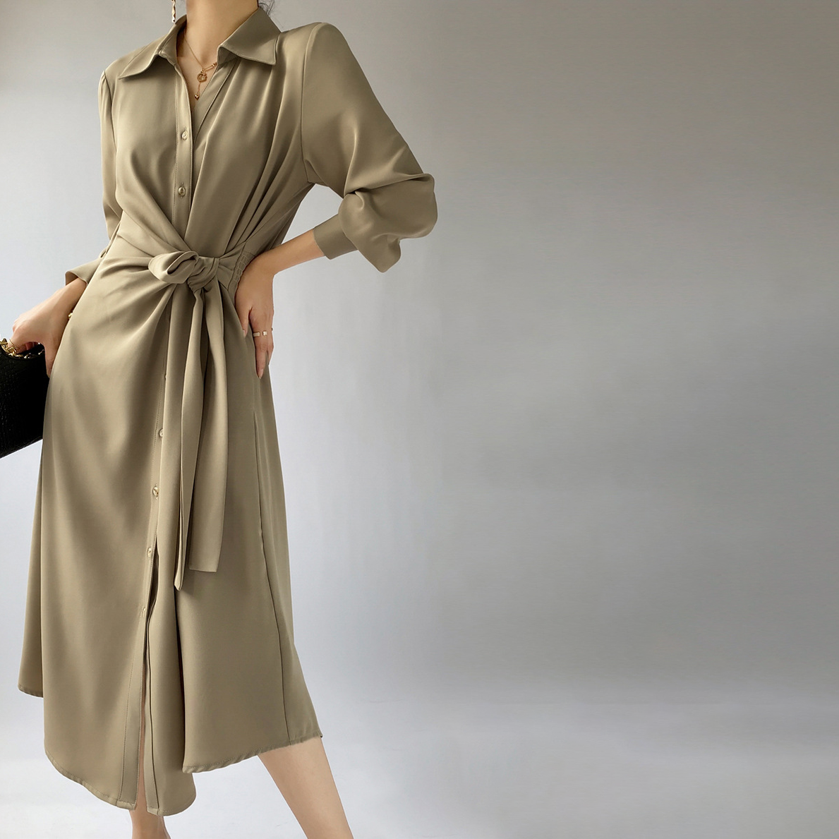 Silk Tie Shirt Dress