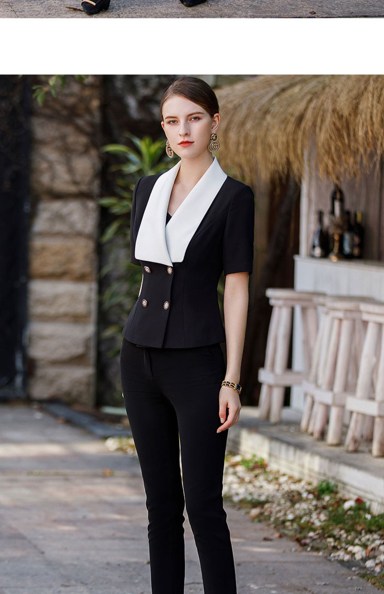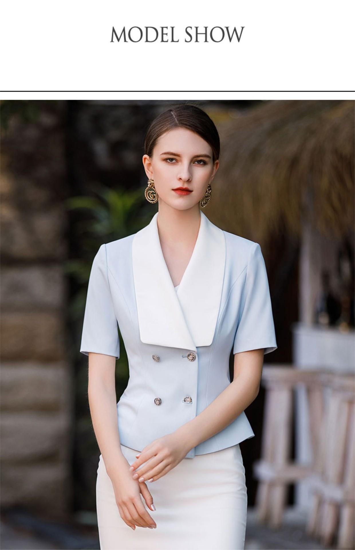 Style: Ol CommuterMaterial: Polyester fiber 57% Composite fiber 43%Blazer Length: EgularCollar-line: V-CollarSleeve Type: Conventional SleeveSleeves Length: Long SleevesPattern Type: Solid ColorSeason: Spring,Summer,Autumn