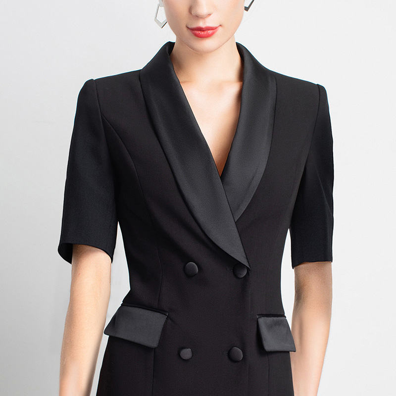 Style: Ol CommuterMaterial: PolyesterDresses Length: Knee-LengthCollar-line: V-CollarSleeve Type: Conventional SleeveSleeves Length: Short SleevesPattern Type: Solid ColorSeason: Spring,Summer,AutumnWith Belt: No