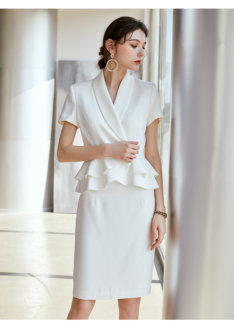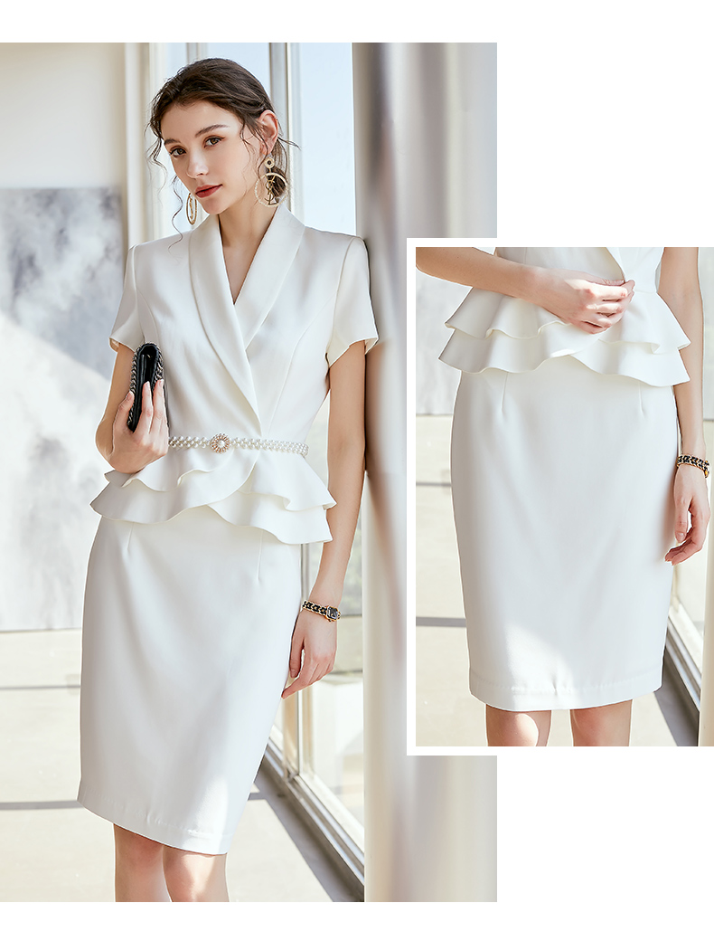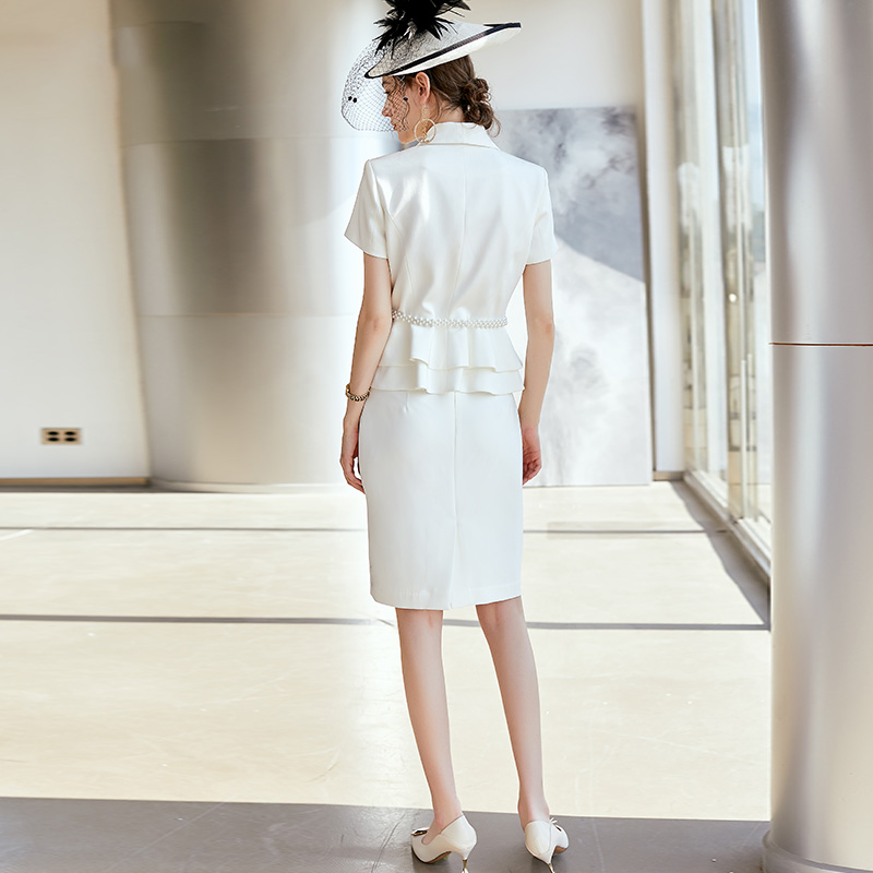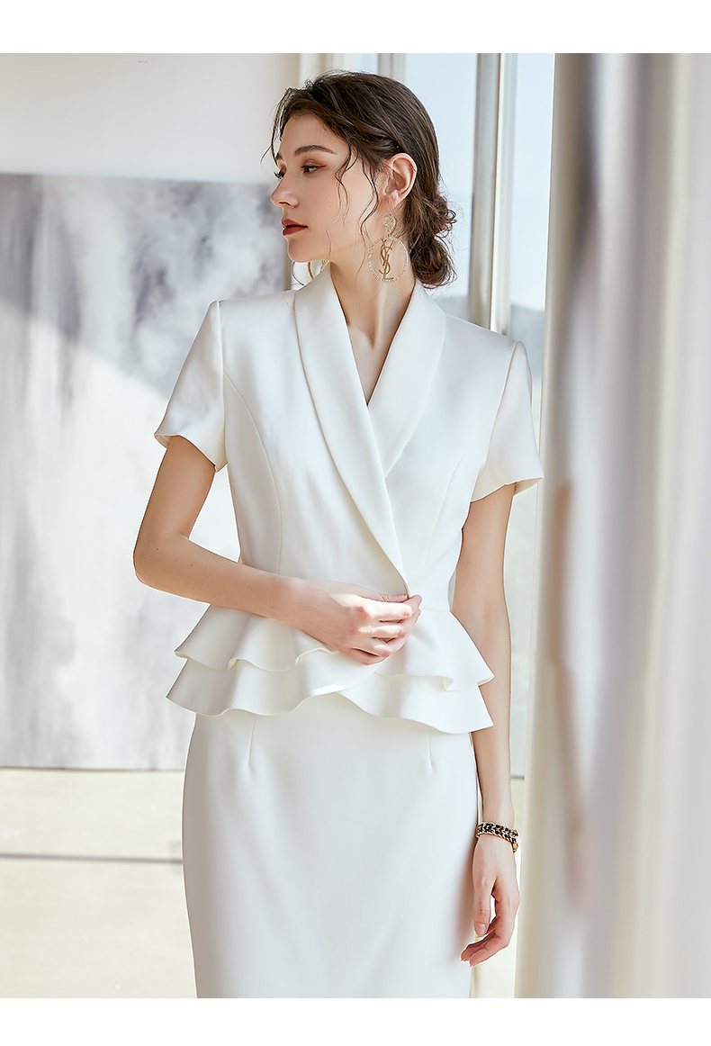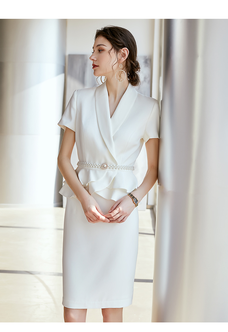 White Shawl Collar Ruffle Belt Short Sleeve Two Piece Suit