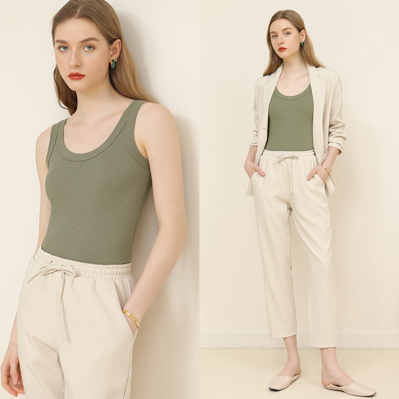 Wide Strap Thread Crew Neck Camisole