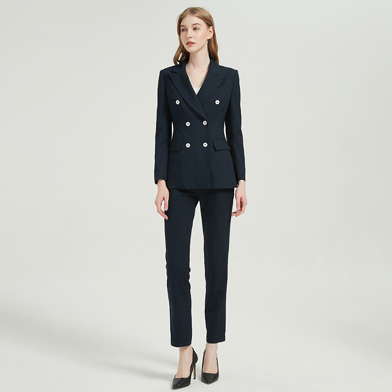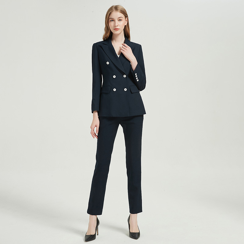 Women's Professional Temperament Navy Blue Suit Two-piece